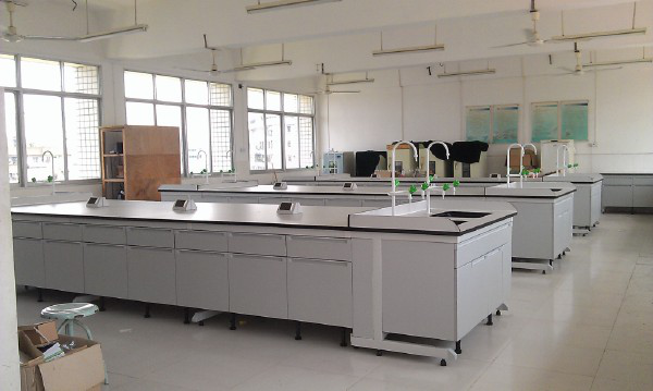配置实验设备:边台、中央台(水槽、试剂架)、通风柜、药品柜、器皿柜、抽滤装置(抽滤水龙头、小水杯槽)。
